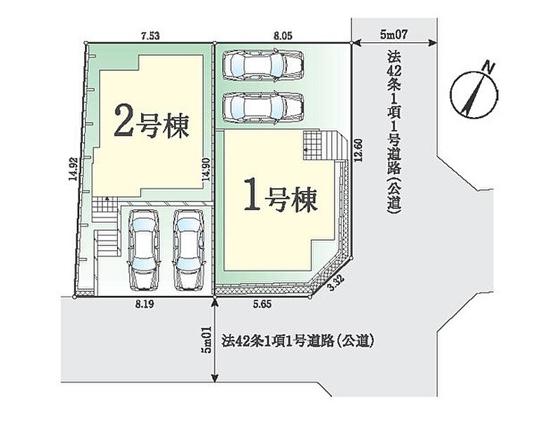 | 駐車場 | 2台 | 道路の幅員 | 2号棟:南5m |