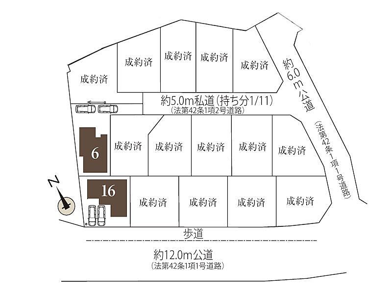 | 駐車場 | 2台 | 道路の幅員 | 16号棟:南12m /6号棟:南東5m |