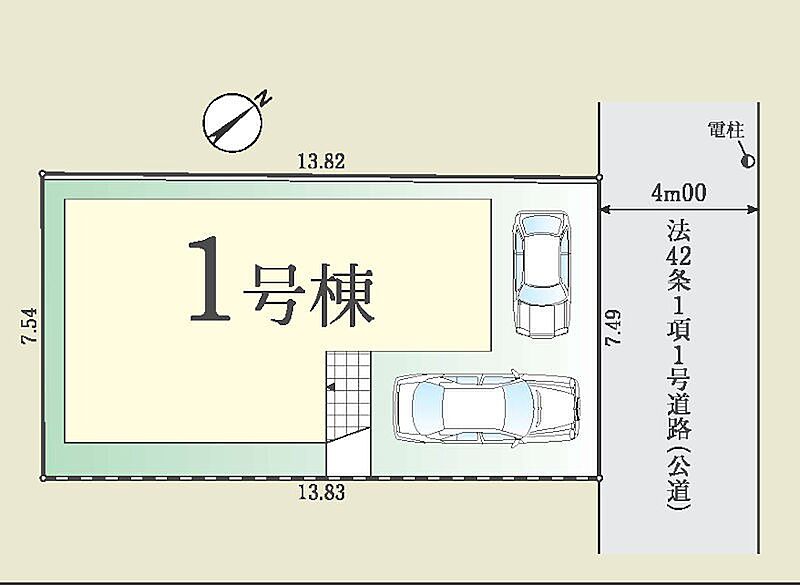 | 駐車場 | 2台 | 道路の幅員 | 1号棟:北東4m |