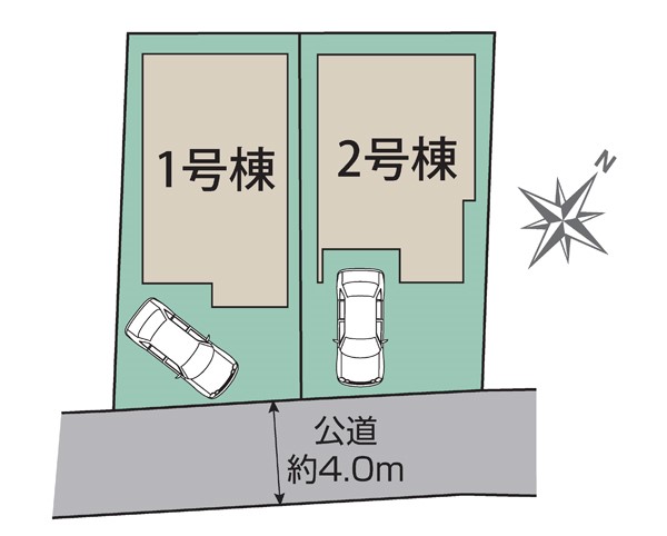 | 駐車場 | 1台 | 道路の幅員 | 1号棟:南東4m /2号棟:南東4m |