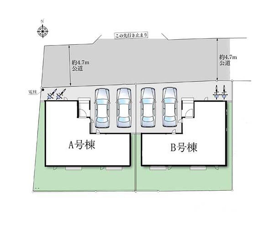| 駐車場 | 2台 | 道路の幅員 | B号棟:北4.7m |