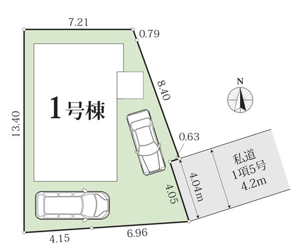 | 駐車場 | 2台 | 道路の幅員 | :東4.2m |
