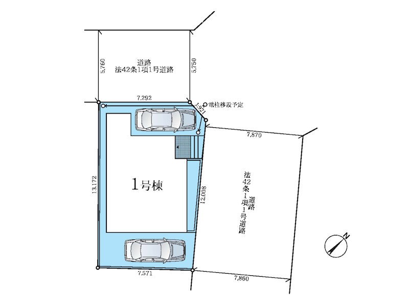 | 駐車場 | 2台 | 道路の幅員 | 1号棟:北東7.8m 北西5.7m |