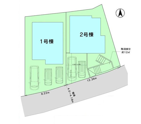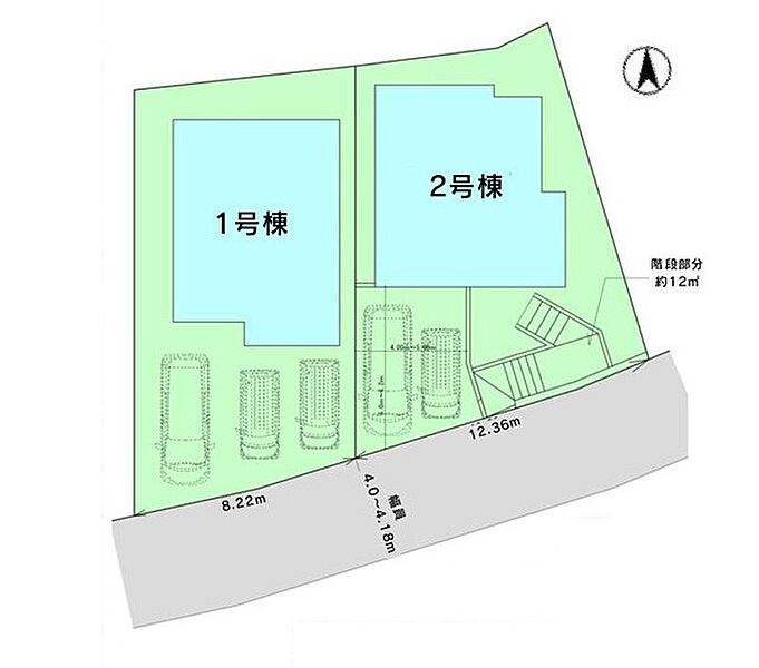 | 駐車場 | 2台 | 道路の幅員 | 2号棟:南4m |