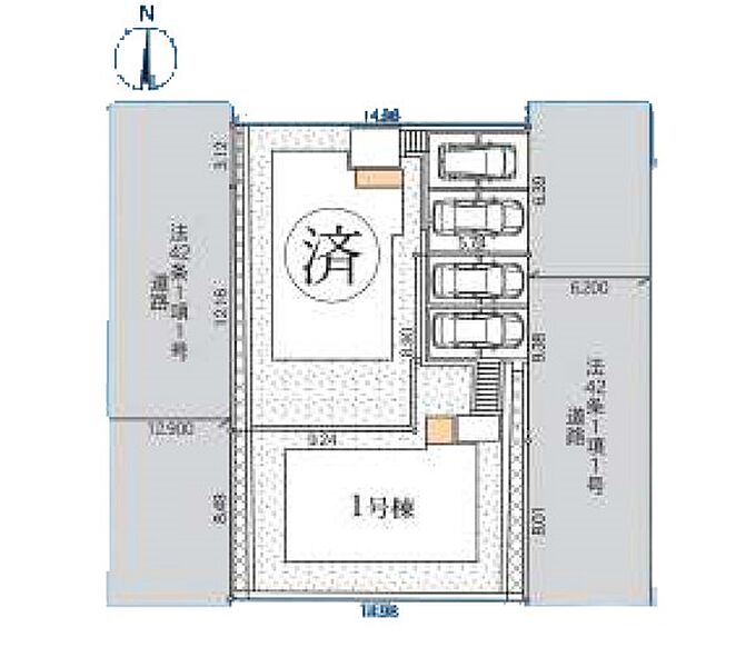 | 駐車場 | 2台 | 道路の幅員 | 1号棟:東6m |