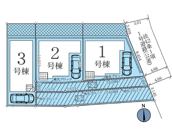 | 駐車場 | 1台 | 道路の幅員 | 1号棟:東4.9m /3号棟:東4.9m /2号棟:東4.9m |