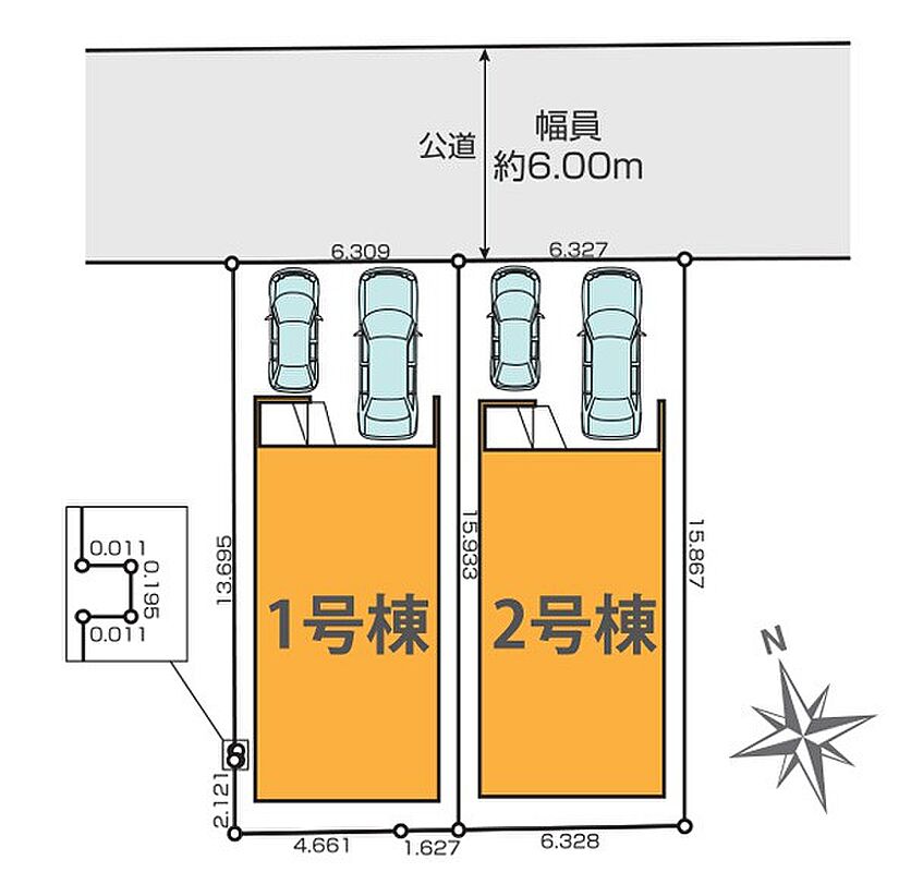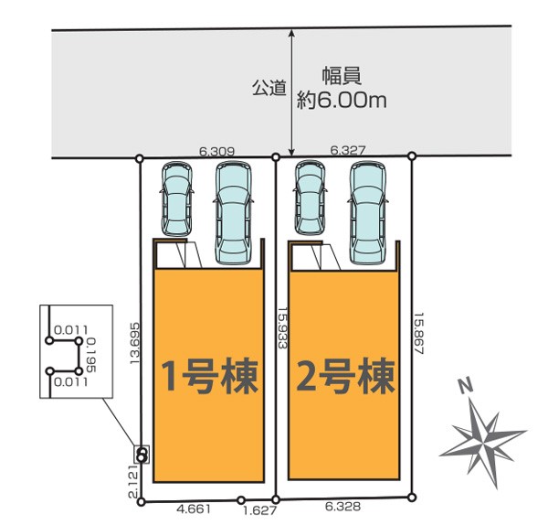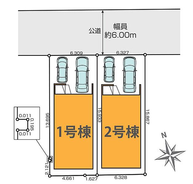 | 駐車場 | 1台 | 道路の幅員 | 1号棟:北6m /2号棟:北6m |