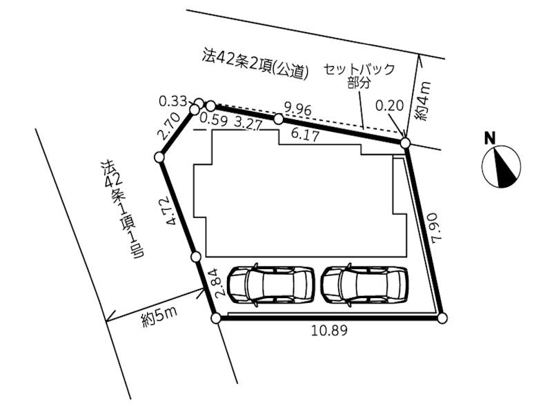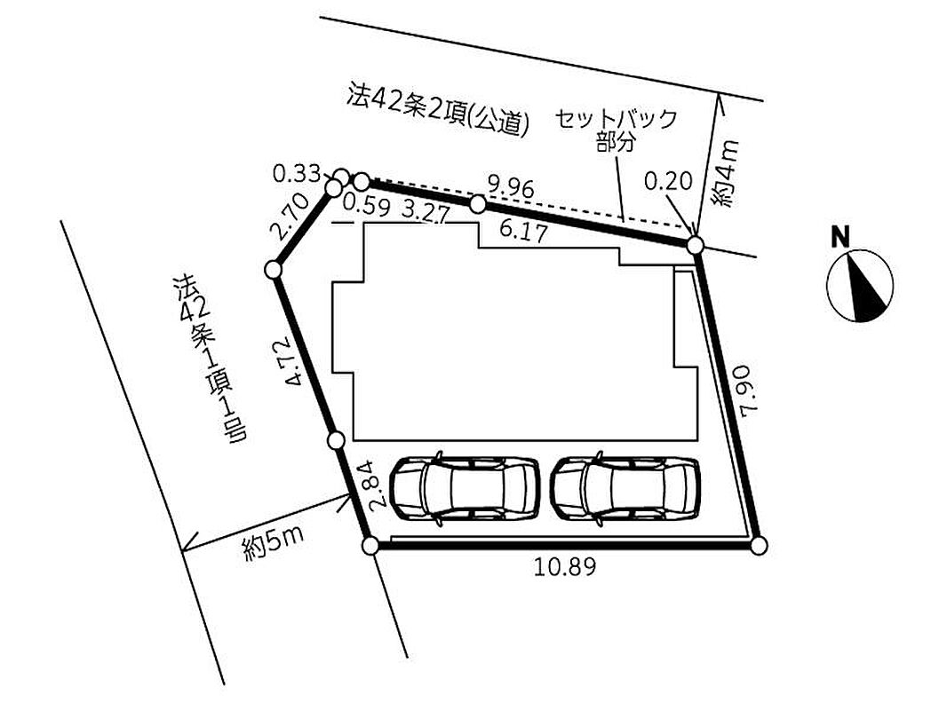 | 駐車場 | 2台 | 道路の幅員 | :北4m 西5m |