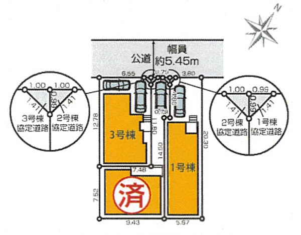 | 駐車場 | 2台 | 道路の幅員 | 3号棟:北西5.4m /1号棟:北西5.4m |
