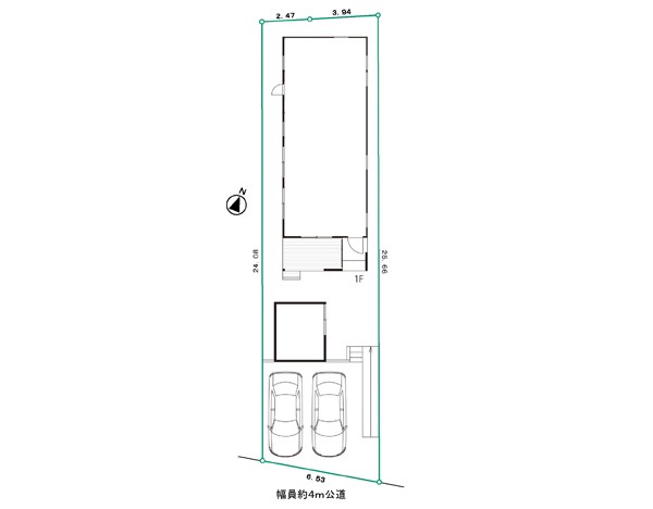 | 駐車場 | 2台 | 道路の幅員 | :南4m |
