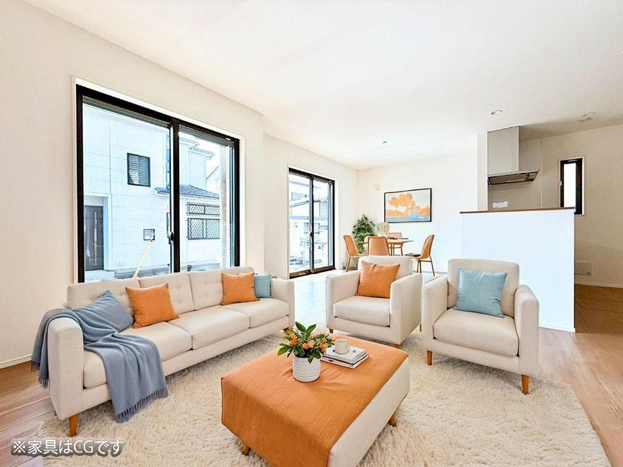 - ※完成予想図やCG合成画像は、門塀・植栽・庭・外観等、実際とは多少異なる場合があります。