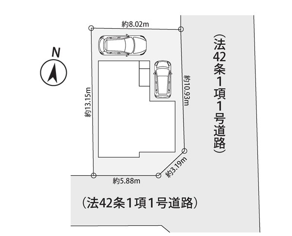 | 駐車場 | 2台 | 道路の幅員 | 1号棟:北東6.5m 南4.5m |