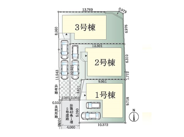 | 駐車場 | 2台 | 道路の幅員 | 2号棟:南4m /1号棟:西4m |