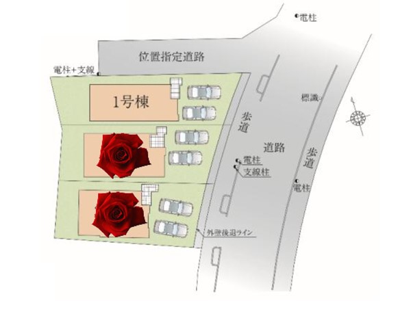 | 駐車場 | 2台 | 道路の幅員 | 1号棟:東11.8m |