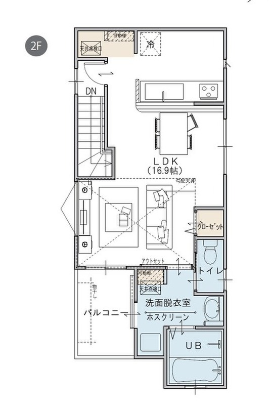北欧スタイルのワンランク上のデザイン空間。 ワンフロアに全てまとまった、2階リビングだからこそ叶う理想の家事動線です。
