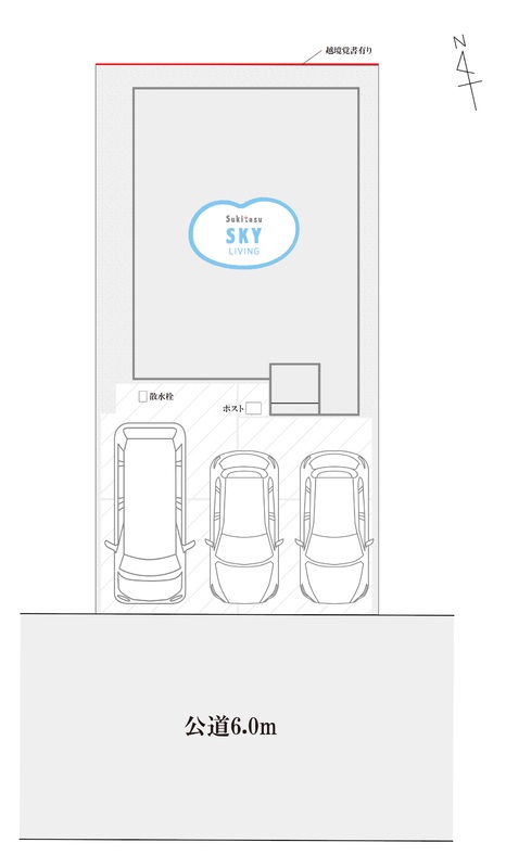 | 駐車場 | 3台 | 道路の幅員 | 道路幅:6m、南側 |
