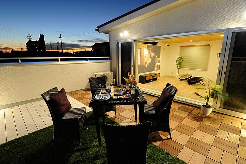 広めのバルコニーと軒で、心地よい日差しと開放感を確保。アウトドアリビングとして家族や友人と過ごしたり、趣味やリラックスタイムに使ったり、自由に楽しめる空間が、日常に彩りを添えます。