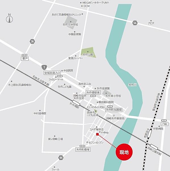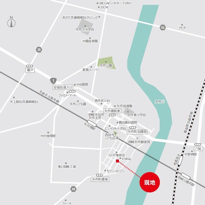 【通勤ラクラク】 ・名鉄本線「矢作橋」駅 徒歩11分。 準急、急行停車駅で名古屋方面、豊橋方面へ快適アクセス ・1号線も近く、車通勤にも便利な立地