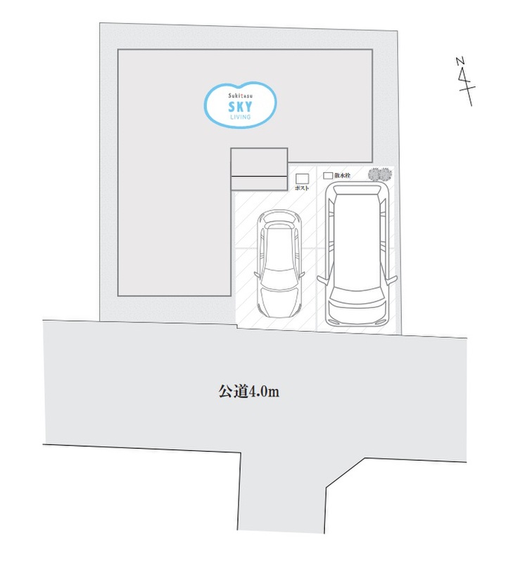 | 駐車場 | 2台 | 道路の幅員 | 道路幅:4.0m、アスファルト舗装、南側幅員 |