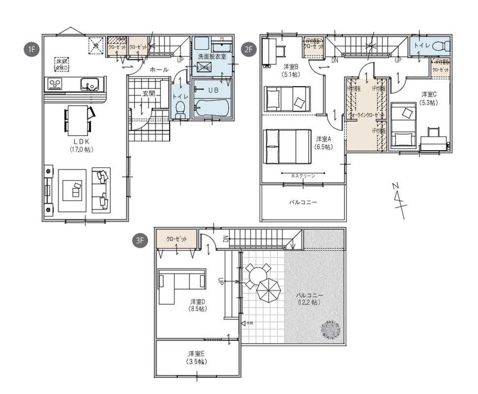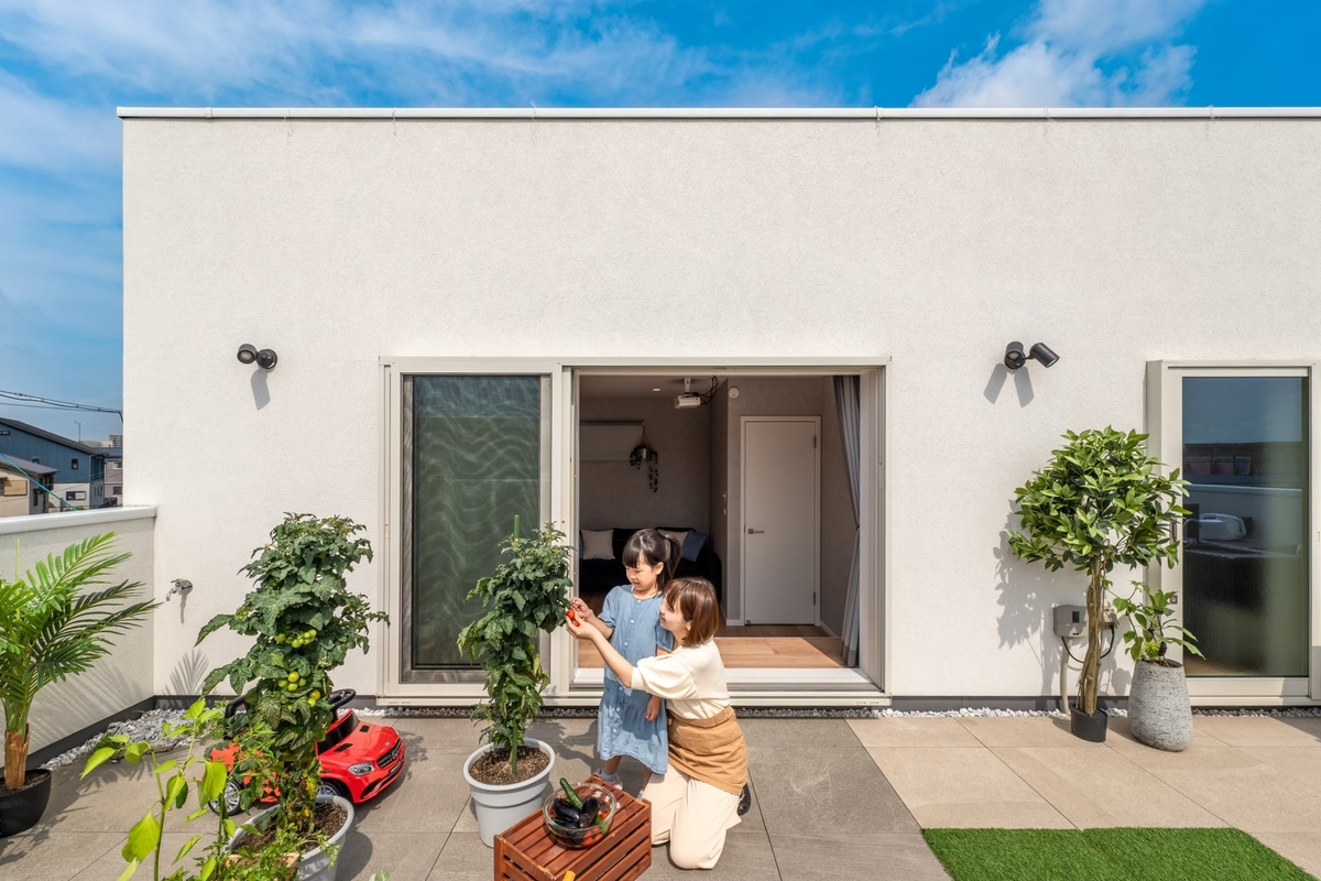 5LDK×屋上庭園のゆとりある居住空間、自宅にいながらアウトドアが楽しめるおもてなし上手なマイホーム。ファミリークローゼットにもなる広々WICやをはじめとしたスマート収納設計