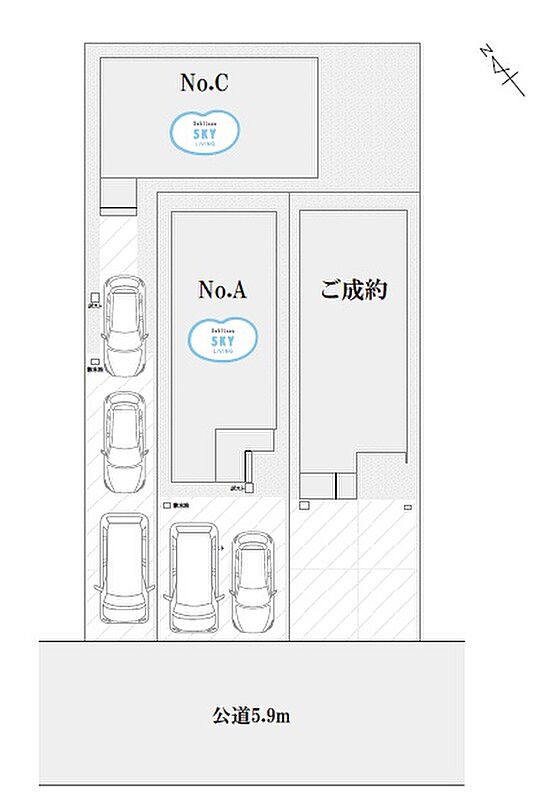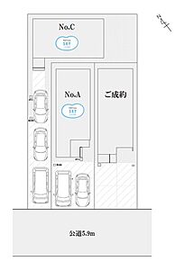 | 駐車場 | 2台 ~ 3台 | 道路の幅員 | 道路幅:6m、アスファルト舗装 |