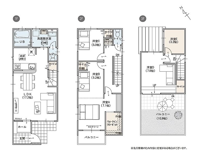 - ※完成予想図やCG合成画像は、門塀・植栽・庭・外観等、実際とは多少異なる場合があります。