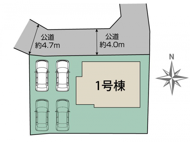 | 駐車場 | 2台 | 道路の幅員 | 北4.0~4.7m公道 |