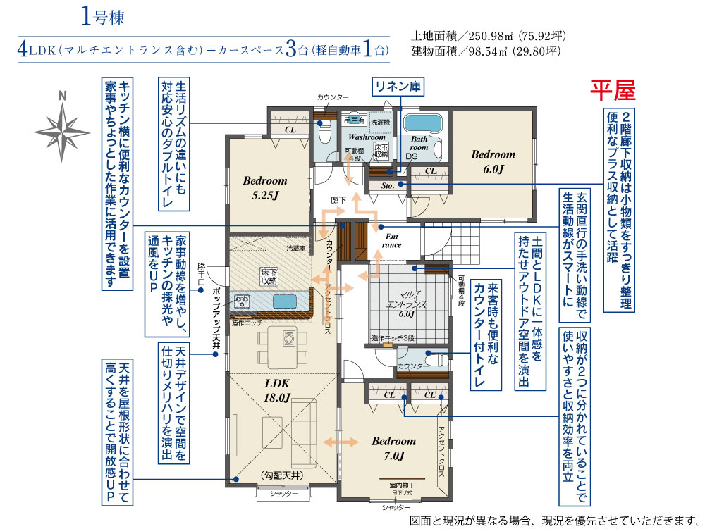 ■■平屋完成!■■おまたせしました!ついに、1号棟・平屋住宅完成です!土間とLDKに一体感を持たせたアウトドア空間【マルチエントランス】採用の間取!お気軽にお問い合わせください♪027-320-123