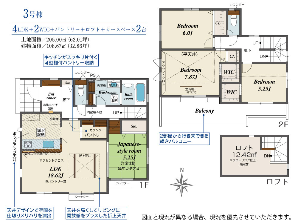| 建物面積 | 93.16m2(約28.18坪)~108.67m2(約32.87坪) | 土地面積 | 205.00m2(約62.01坪)~250.98m2(約75.92坪) |