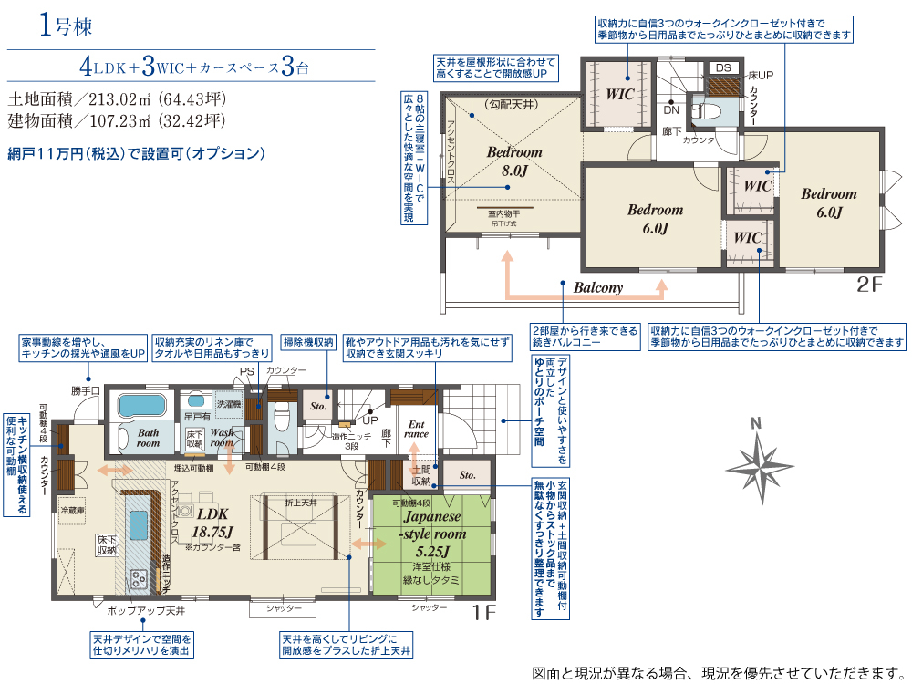 | 建物面積 | 98.12m2(約29.68坪)~107.23m2(約32.43坪) | 土地面積 | 211.18m2(約63.88坪)~213.02m2(約64.43坪) |