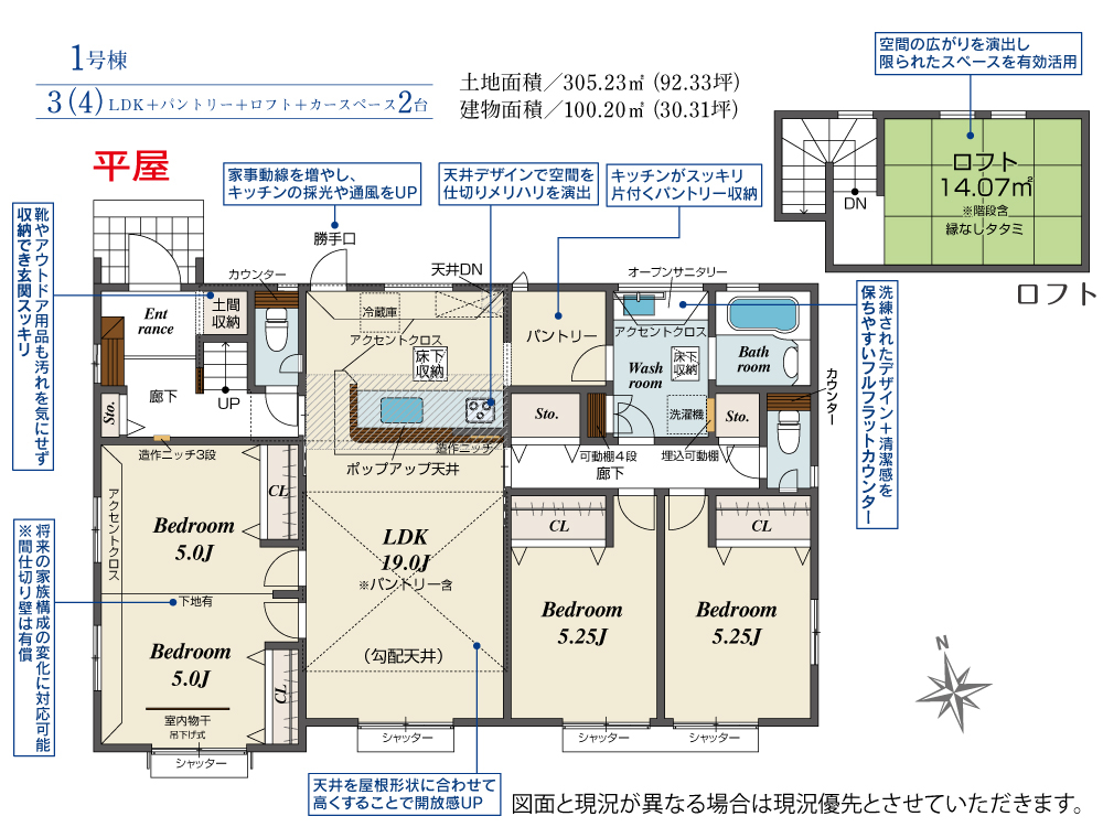 | 建物面積 | 100.20m2(約30.31坪) | 土地面積 | 305.23m2(約92.33坪) |