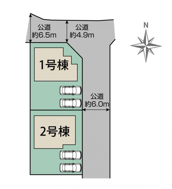 | 駐車場 | 2台 | 道路の幅員 | 東6.0m公道、北4.9~6.5m公道 |
