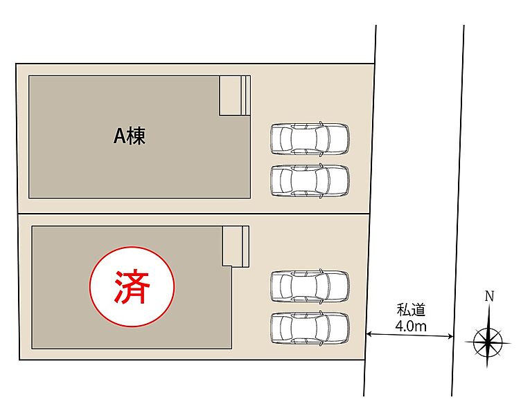 | 駐車場 | 2台 | 道路の幅員 | 東側4.0m私道(私道面積243m2、持分30分の1) |