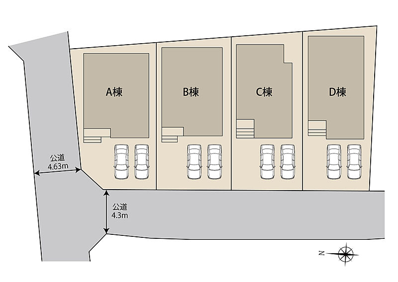 魅力1 全4棟!カースペース並列2台可能