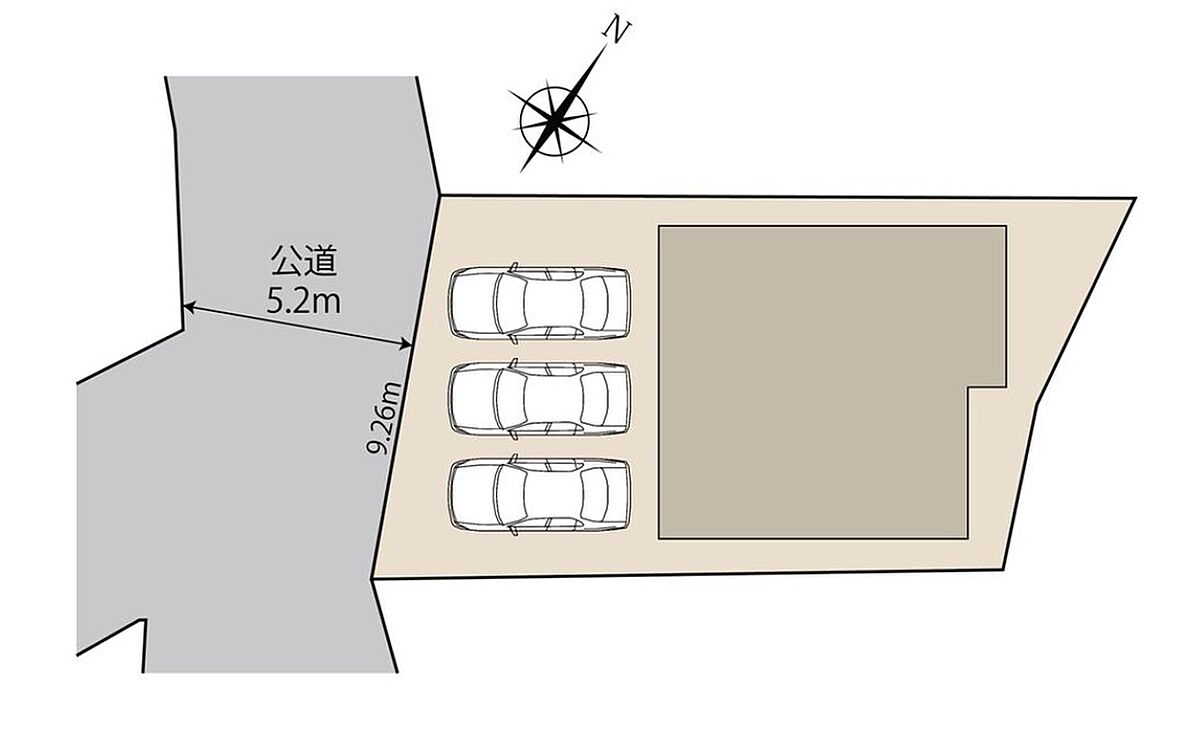 | 駐車場 | 3台 | 道路の幅員 | 道路幅:5.2m、アスファルト舗装 |
