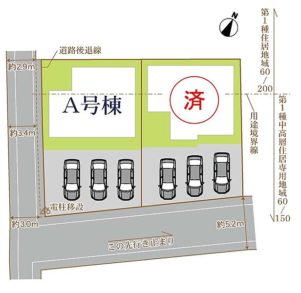 | 駐車場 | 3台 | 道路の幅員 | 道路幅:5.2m、アスファルト舗装 |