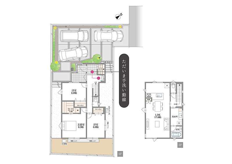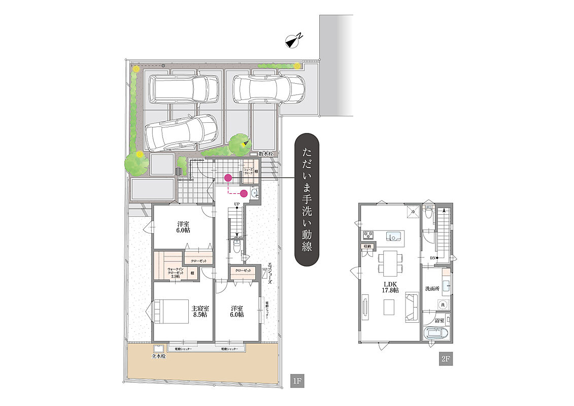 - ※完成予想図やCG合成画像は、門塀・植栽・庭・外観等、実際とは多少異なる場合があります。