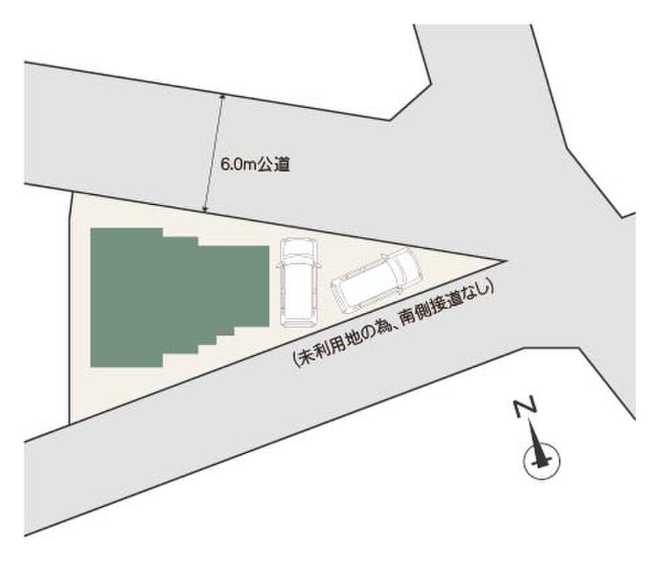 | 駐車場 | 2台 | 道路の幅員 | 北側6.0m公道、東側5.3m公道 |