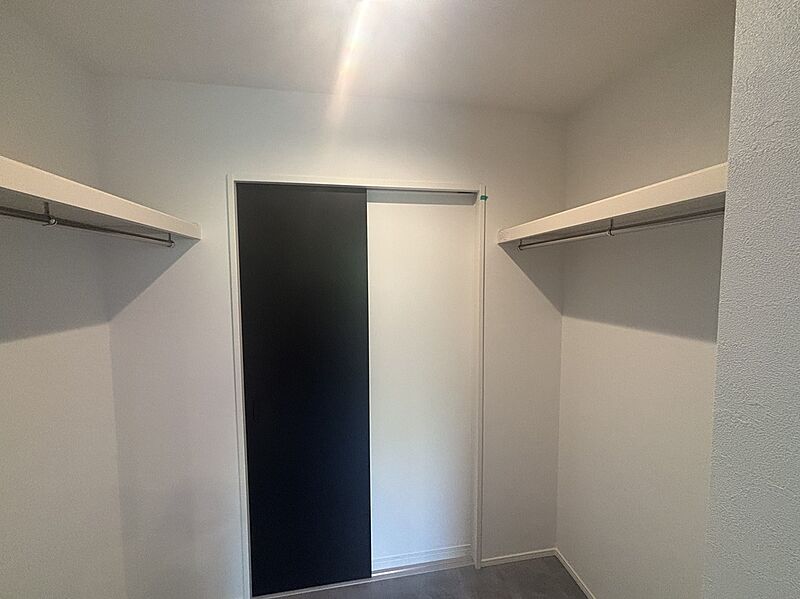将来を見据えた快適な動線のファミリークローゼット。主寝室とキッチン横から出入り可能