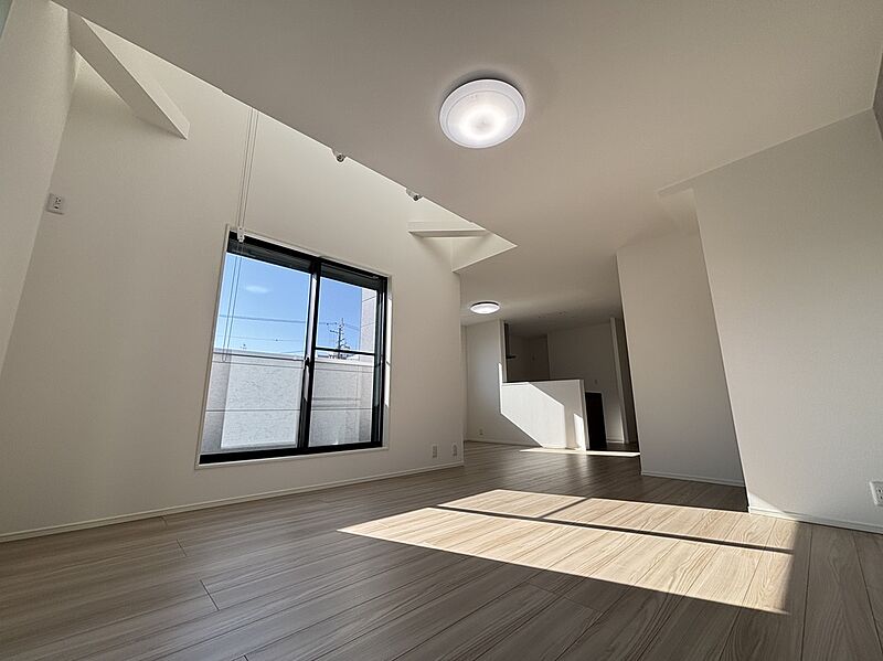 リビング上部には吹抜を設け自然光を取り込み明るい空間に!