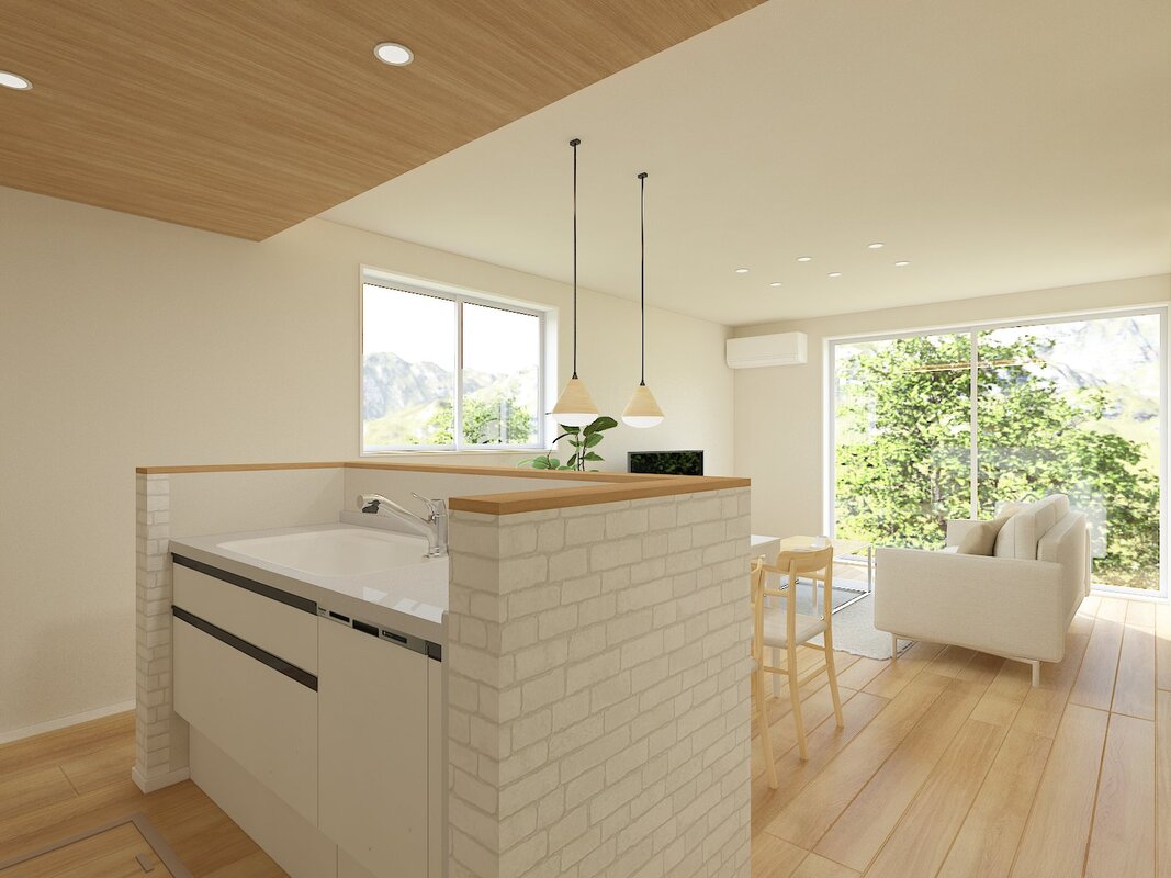 ■吹抜とアイランドキッチンが特徴のLDK