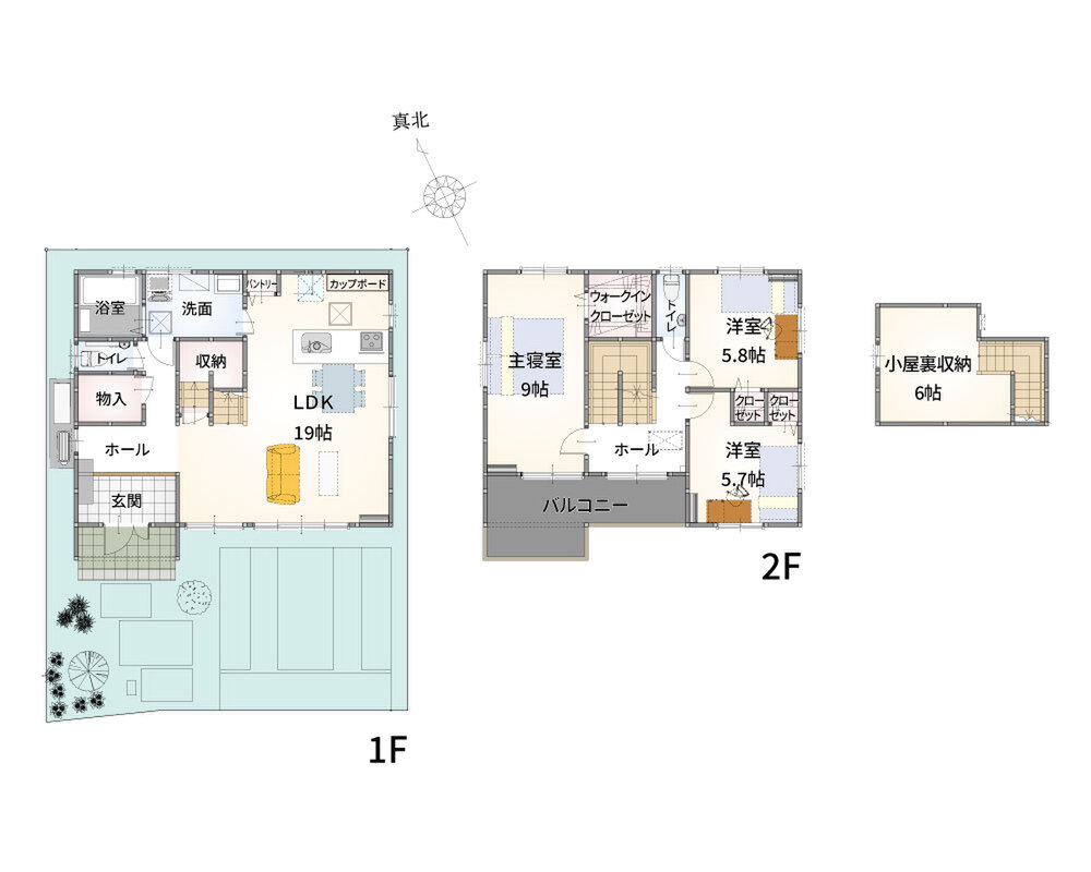 | 間取り | 2LDK+フリールーム+小屋裏収納(固定階段付)、3LDK+小屋裏収納(固定階段付) | 建物構造 | 木造2階建 |