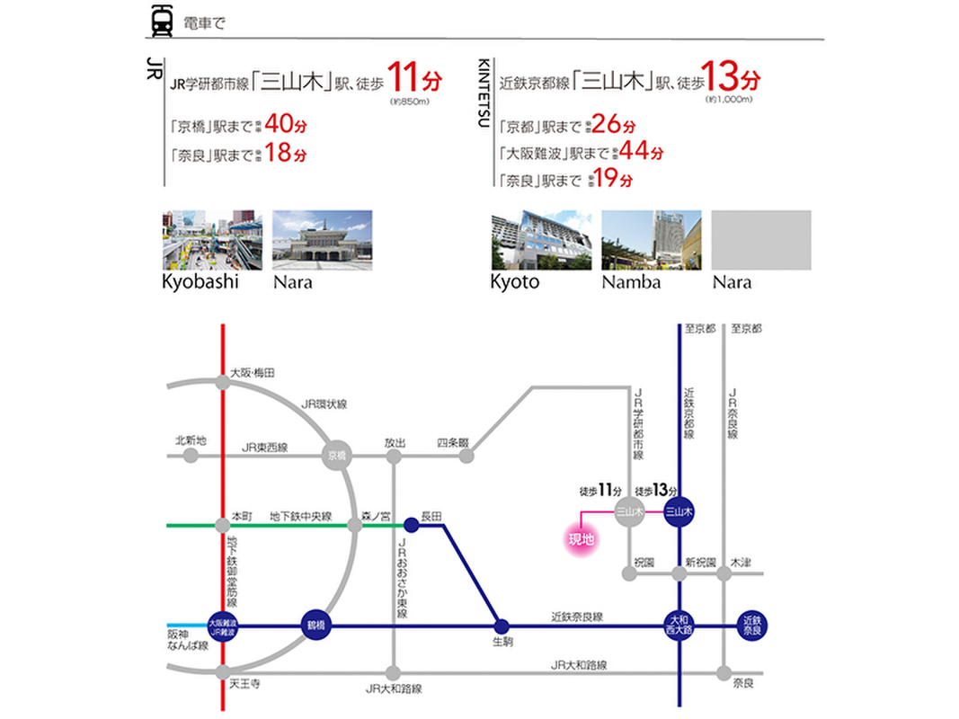 JR片町線(学研都市線)「JR三山木」駅 徒歩11分 近鉄京都線「三山木」駅 徒歩13分 |