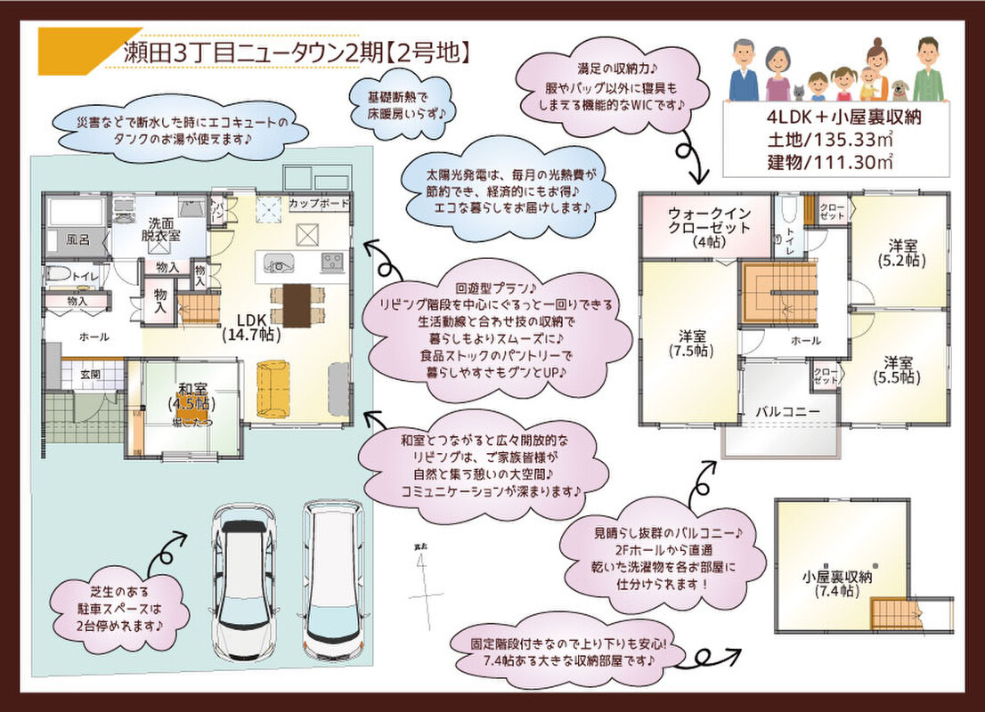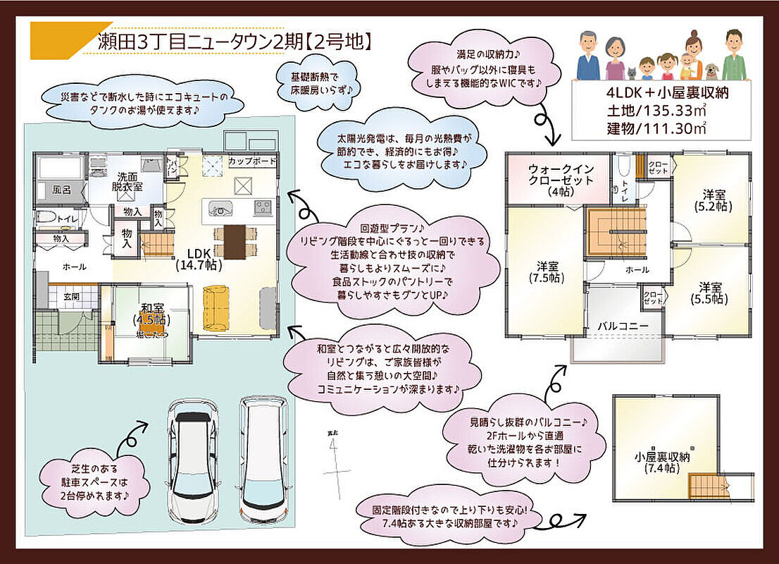 | 建物面積 | 111.30m2(33.66坪)~112.96m2(34.17坪)(登記) | 土地面積 | 135.33m2(40.93坪)~138.53m2(41.90坪)(登記) |