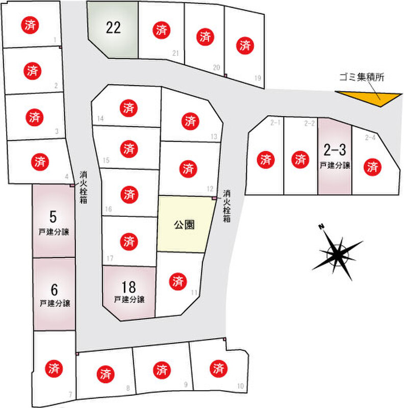 | 完成予定日 | 1期5号地2024年10月、1期18号地2024年1月、2期3号地2024年3月 | 引き渡し可能年月 | 1期5号地、1期6号地、1期18号地、2期3号地 即引渡可 |