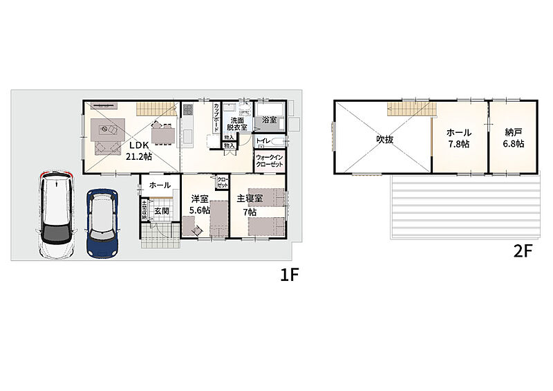 | 駐車場 | 駐車2台 | 道路の幅員 | 6m |