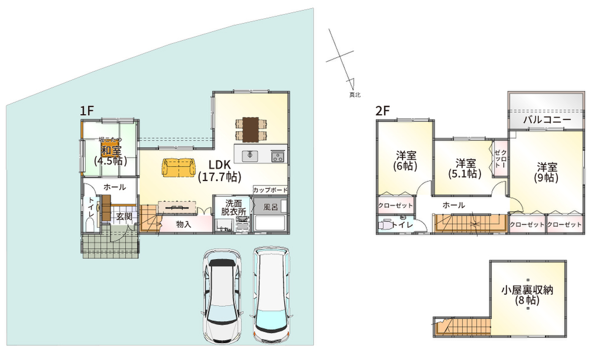 | 完成予定日 | 2号地5号地2022年12月 3号地2022年3月 | 引き渡し可能年月 | 2号地3号地5号地即引渡可 |