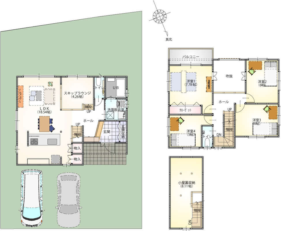 2号地 間取り 4LDK+小屋裏収納(固定階段付き) 価格 3880万円 建物面積 103.50m2 土地面積 211.35m2 -