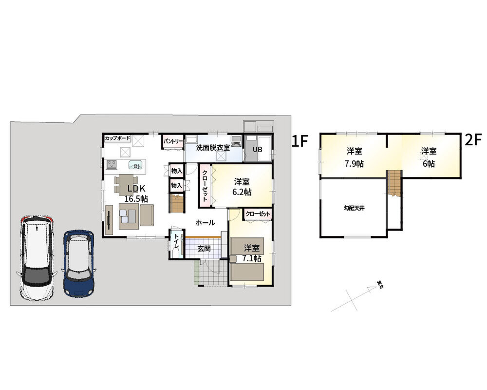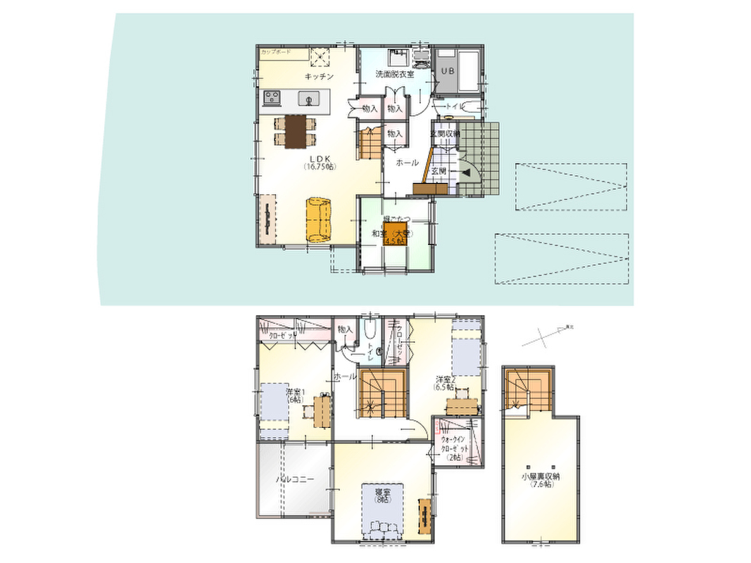 - ※完成予想図やCG合成画像は、門塀・植栽・庭・外観等、実際とは多少異なる場合があります。