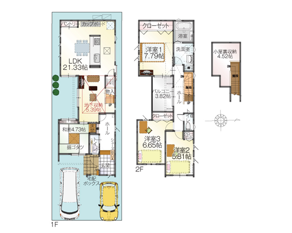 - ※完成予想図やCG合成画像は、門塀・植栽・庭・外観等、実際とは多少異なる場合があります。